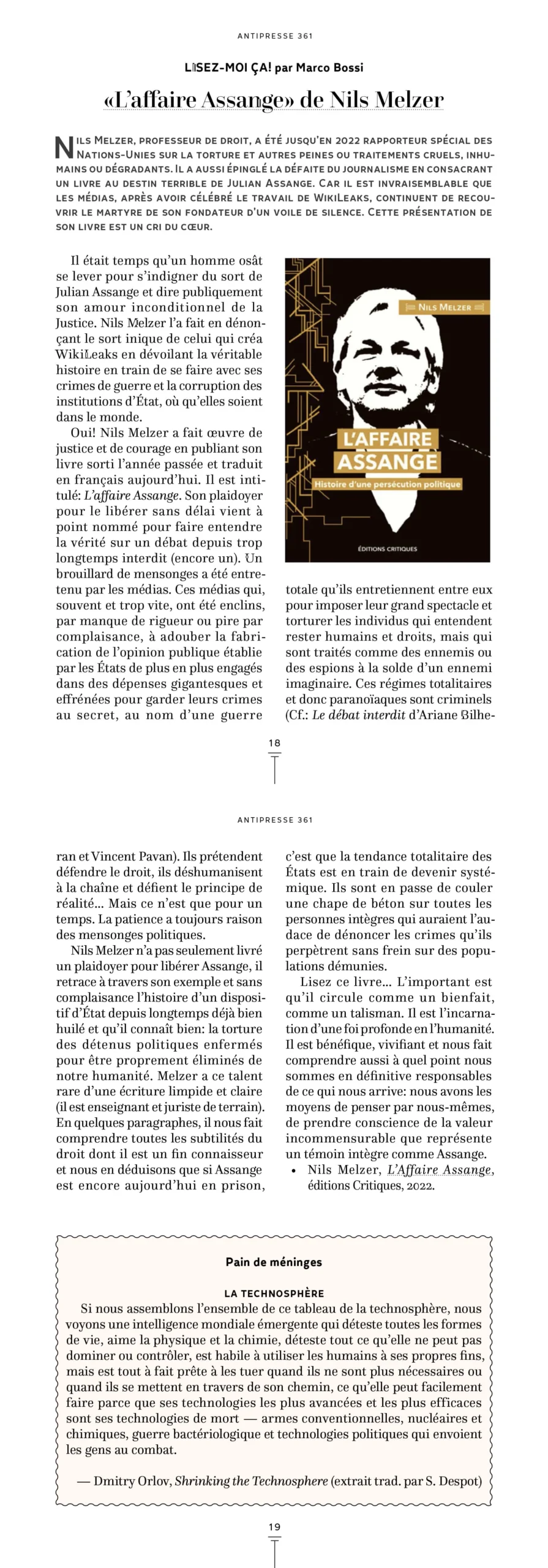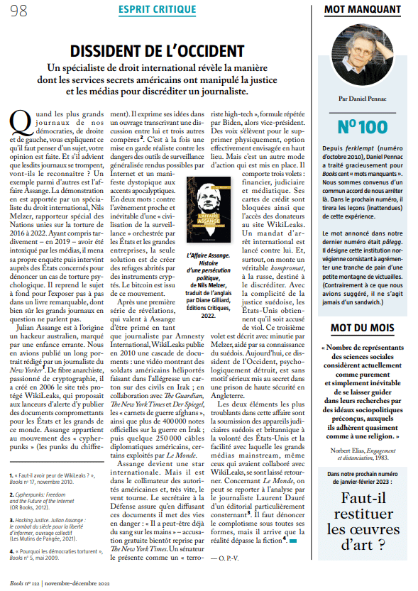 L’affaire Assange, c’est l’histoire d’un homme persécuté et maltraité pour avoir révélé les sordides secrets des puissants, notamment les crimes de guerre, la torture et la corruption. C’est l’histoire d’un arbitraire judiciaire délibéré dans des démocraties occidentales qui tiennent par ailleurs à se présenter comme exemplaires en matière de droits de l’homme. C’est l’histoire d’une collusion délibérée des services de renseignement dans le dos des parlements nationaux et du grand public. C’est l’histoire de reportages manipulés et manipulateurs dans les médias grand public aux fins d’isoler, de diaboliser et de détruire délibérément un individu.